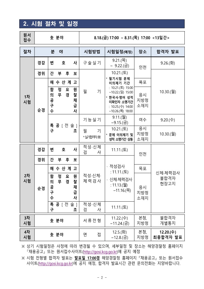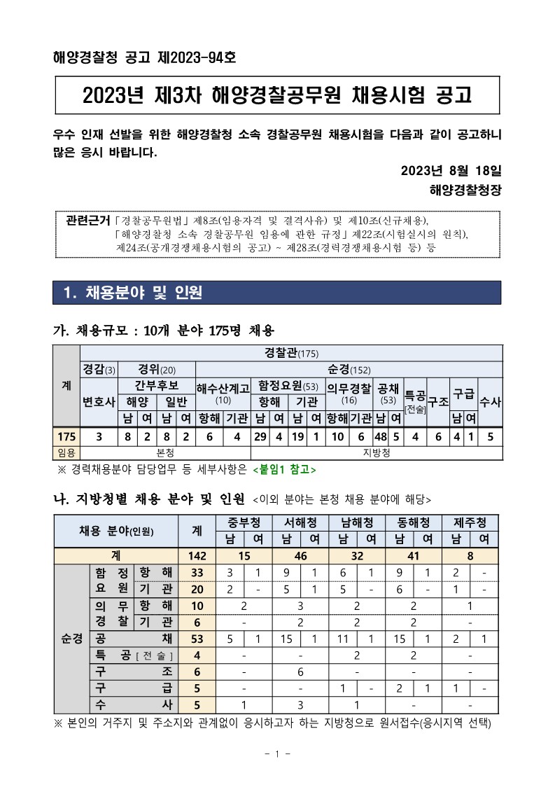 2023년 제3차 해양경찰청 소속 경찰공무원 경력경쟁채용시험 공고
