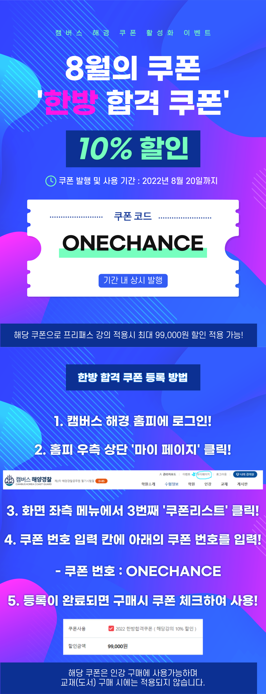 캠버스 해양경찰 8월 쿠폰 : 한방 합격 쿠폰