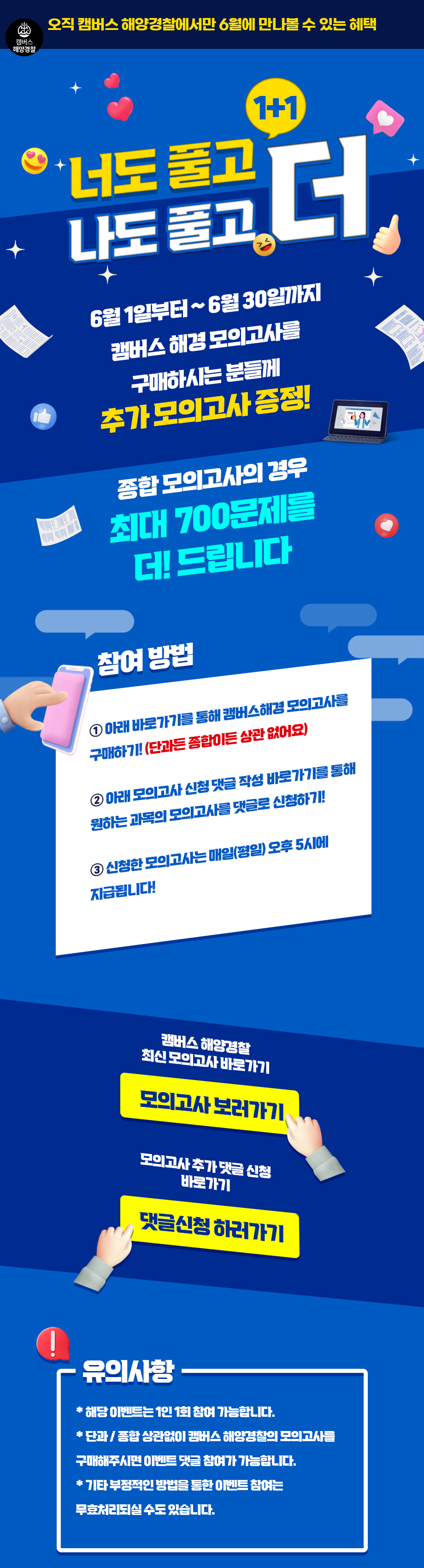 [마감] 캠버스 해양경찰 모의고사 활성화 이벤트! 6월 한 달 간은 모의고사 1+1!! 추가 증정