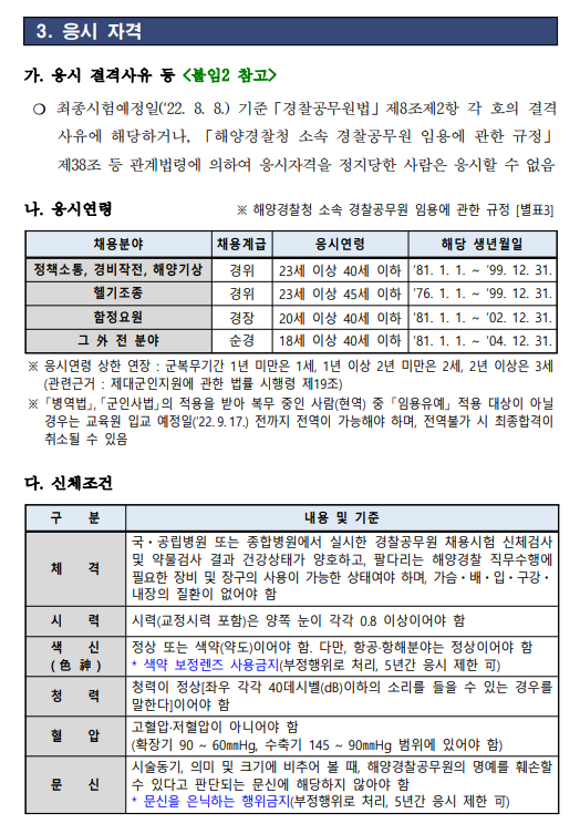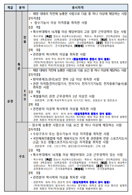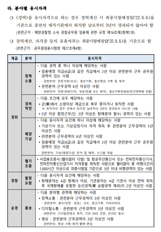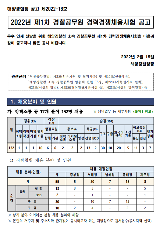 2022년 상반기 해양경찰 전직렬 공통 채용공고