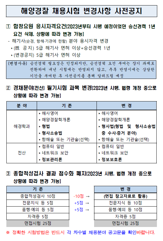 [긴급공지] 2023년 해양경찰 채용시험 변경사항 사전공지 안내